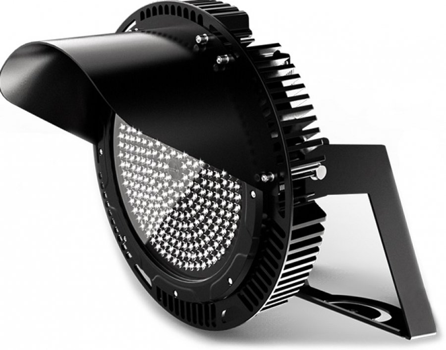 IP65 High power LED floodlight, beschikbaar in 3 verschillende stralingshoeken. Seoul SMD LED’s en Meanwell driver. Behuizing zwart gegoten aluminium met roestvrije moeren. Ingebouwde overspanningsbeveiliging (2KV), hoog efficiënt: 150lm/W in 5000K/CRI>70 versie. Afschermkap bovenaan. Toepassingen: sportvelden, hoge masten, hoge luminantie buitenverlichting.